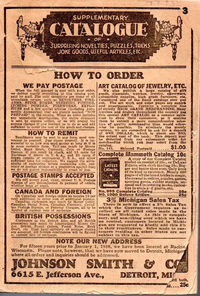 Notes: This is a catalog, not a supplement. This catalog advertised their Mammoth 500+ page, 1947 catalog to be distributed in July of 1946. This catalog doesn’t appear to have been distributed.