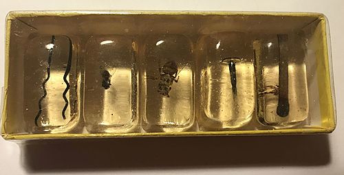 Description: “Hokey’s Bar Bugg” is a set of acrylic cubes with various items embedded in them. They are intended to be placed in drinks for a laugh.