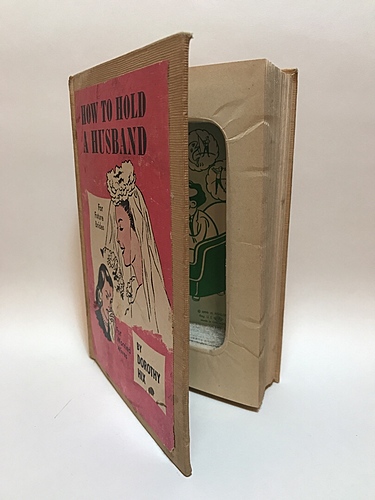 Description: “How To Hold A Husband” is a real book with a replaced cover and cut out pages to hold the prank.