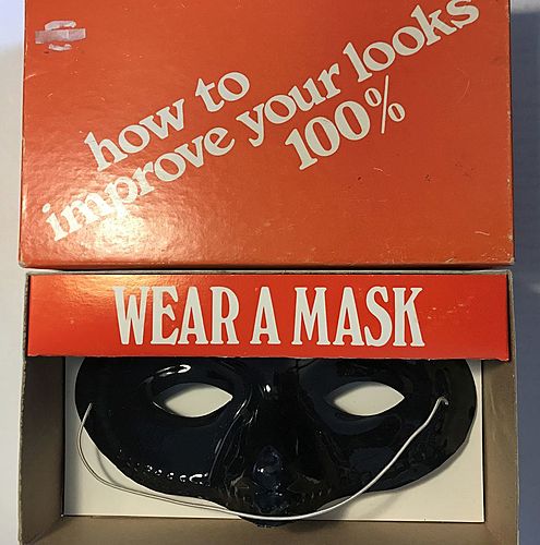 Description: Item # 806 “How To Improve Your Looks 100%” is a gag box that has a mask inside to improve your looks.