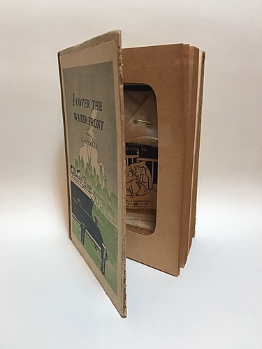 Description: Item #872 “I Cover The Water Front” gag book is an actual book with a replaced cover and cut out pages to expose the gag, which is a baby’s diaper.