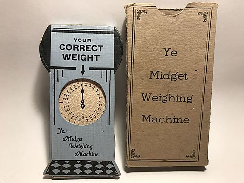Description: “Ye Midget Weighing Machine” is a device that is intended to tell your weight. You put in a penny and press the lever on the back at which point a message comes up saying you are now a penny lighter.